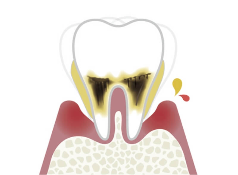 歯周病は歯を失う原因として最も多い病気です。歯周病菌による歯ぐきの炎症が生じ、悪化すると歯を支える歯槽骨が溶かされていき、歯周組織が破壊されてしまいます。